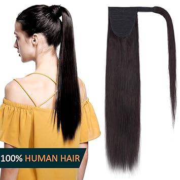 Queue De Cheval Extension Naturel 100 Vrai Cheveux Humain Rajout Lisse Ponytail Hair Extensions Attache Par Bande Agrippantes Adhesives 1b Noir